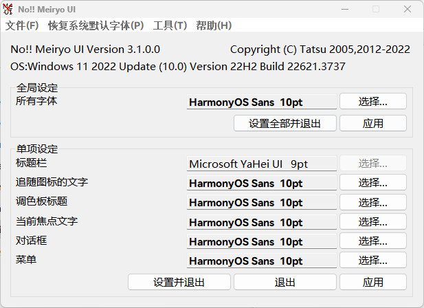 文章标题:windows字体管理工具noMeiryoUI3.1.0