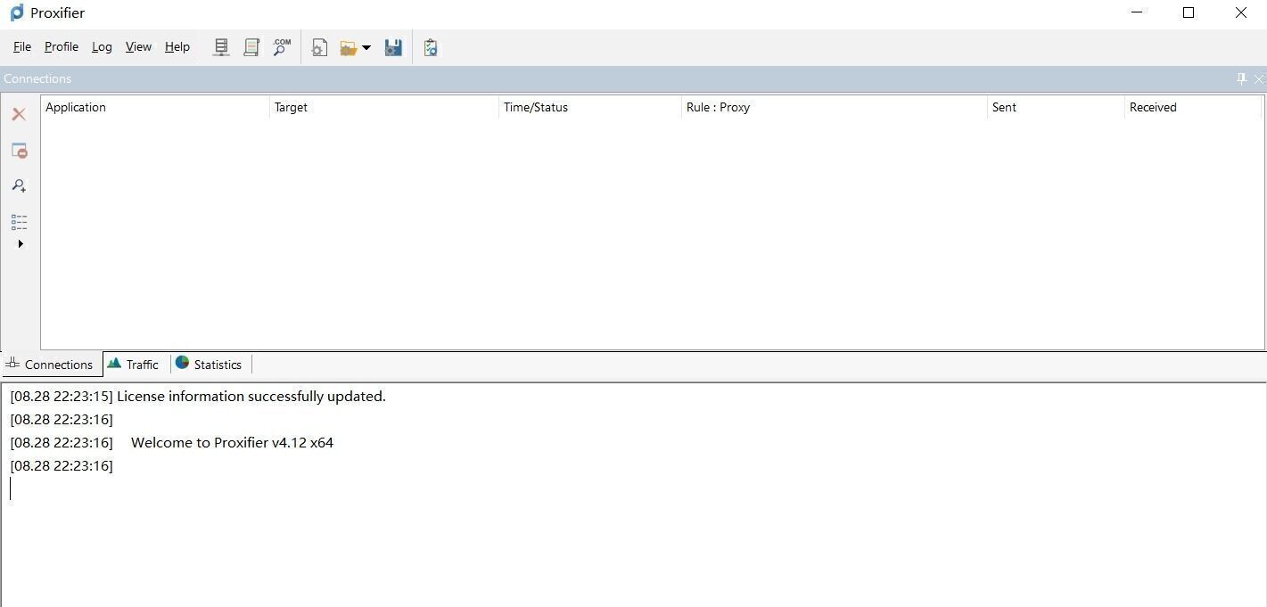 默认情况下,Proxifier配置为绕过所有网络连接。如果启用详细输出Log-> Output Level-> Verbose,您仍然可以看到连接和DNS请求。