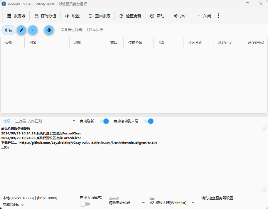 注意2: v2rayn.exe从文件夹中拖拽到其它目录会导致无法正常使用